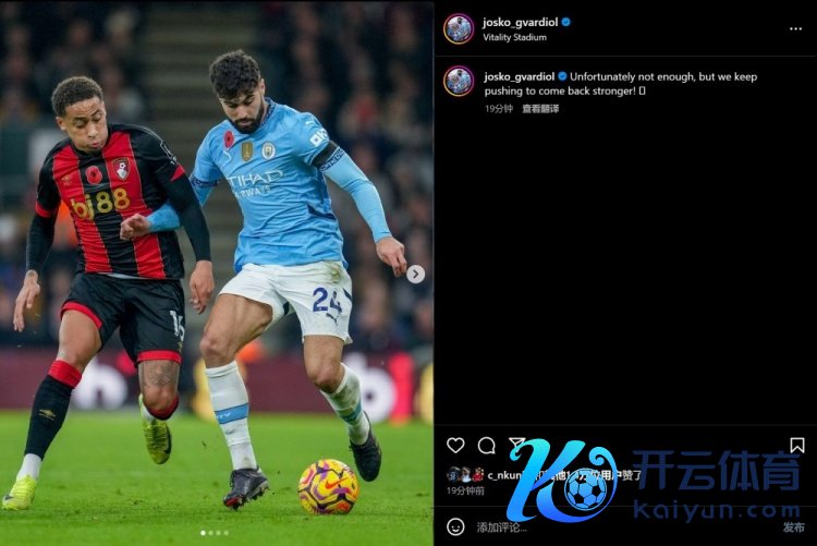 11月3日讯 英超第十轮,曼城1-2爆冷不敌伯恩茅斯。本场比赛,格瓦迪奥尔打进一球,但没能匡助球队逆转。赛后,他更新了社媒,为球队加油打气。