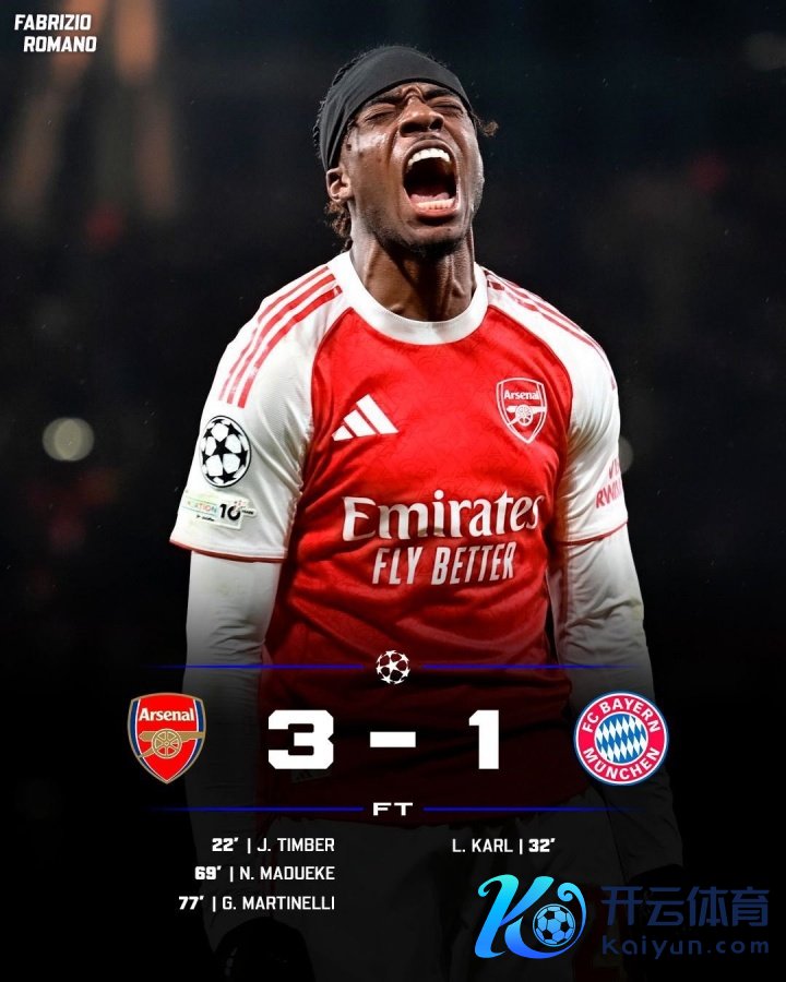 欧冠联赛阶段第5轮,阿森纳3-1礼服拜仁慕尼黑,马杜埃凯首球,诺伊尔直立。