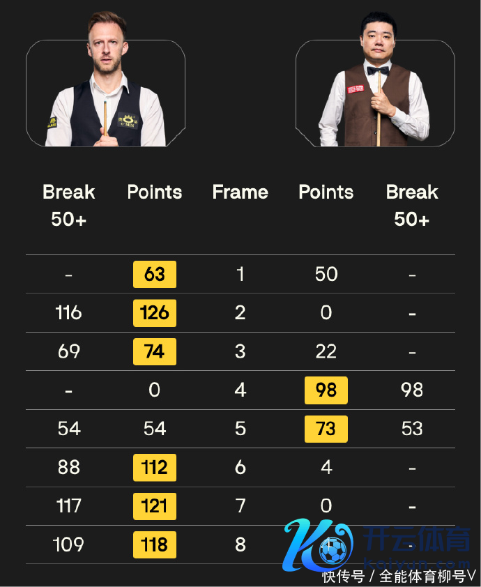 世锦赛四强的斯佳辉,在与“囧哥”凯伦-威尔逊的较量中体育集锦,以2-6无缘八强 。而在第四个比赛日进行的一场焦点比赛中,“中国一哥”丁俊晖挑战宇宙第一“准度王”贾德-特鲁姆普未果,他以2-6无缘八强。尽管丁俊晖、斯佳辉莫得晋级,但中国斯诺克军团的全体阐扬已经让东说念主喜悦。