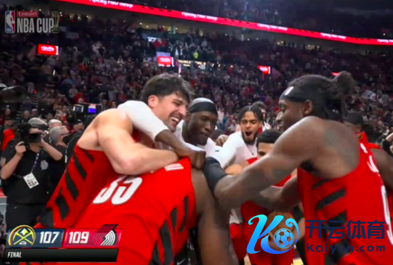 随着约基奇抛投不中,比赛就此适度,诱惑者全队在场上怡悦的庆祝,绝对围着格兰特,他是球队取胜元勋。替补席上的球员也纷繁来到球场当中,接着围在通盘怡悦的庆祝着(里斯就冲上来与队友搂在通盘),大约在主场打败强大敌手掘金仍是挺让东说念主飞腾的,同期在小组出线的契机上占据一个主动。