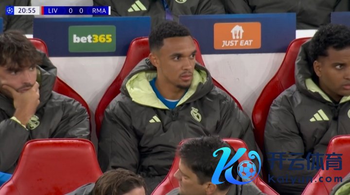 11月05日讯 利物浦vs皇马第21分钟体育录像/图片,转播镜头给到阿诺德。此役阿诺德重回安菲尔德,替补待命。