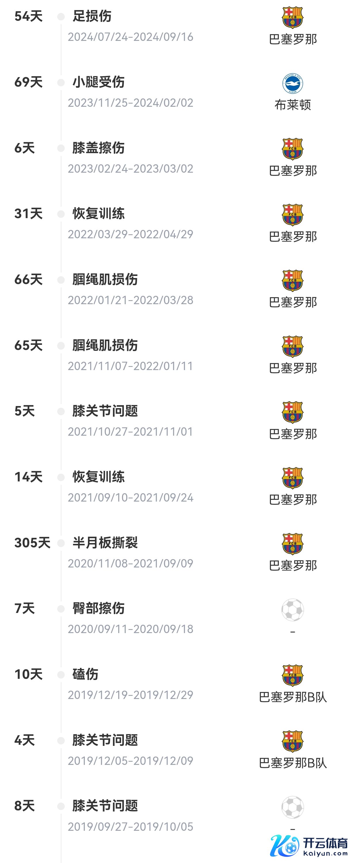 法蒂此前伤病史