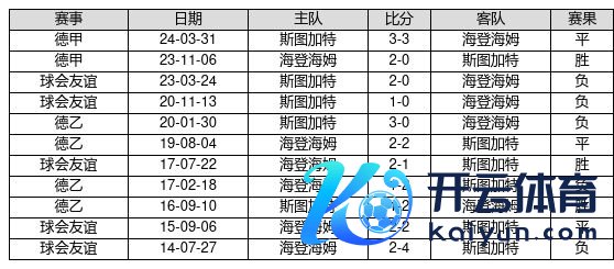 海登海姆 VS 斯图加特两队近10年的交战次数为11场,海登海姆3胜3平5负,赢球概率为27.3%,平局概率为27.3%,输球概率为45.5%。