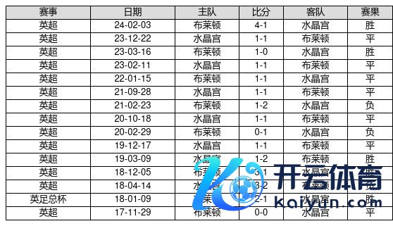 布莱顿 VS 水晶宫两队近10年的交战次数为15场,布莱顿5胜7平3负,赢球概率为33.3%,平局概率为46.7%,输球概率为20.0%。