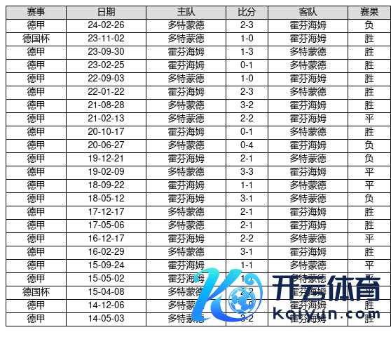 多特蒙德 VS 霍芬海姆两队近10年的交战次数为23场,多特蒙德12胜7平4负,赢球概率为52.2%,平局概率为30.4%,输球概率为17.4%。